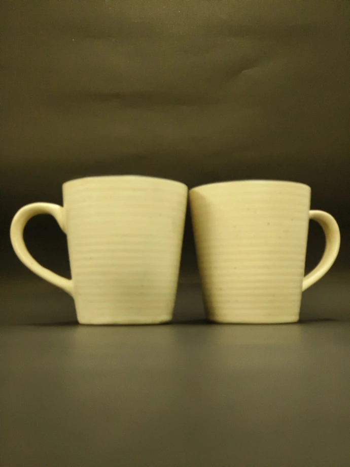 A minimalistic ribbed ceramic mug with a soft matte glaze. Its timeless shape and neutral tone make it suitable for both home and office use.